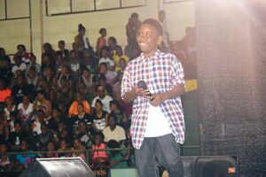The winner in Young Executive category Keith Wairia in 2016 season held at multipurpose hall smile to his funs while preparing to perform winning song